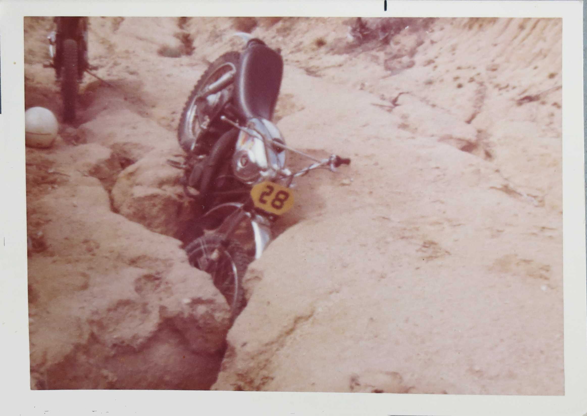 Note the "Dirt Rider" brand tool bag on the forks. Whatever happened