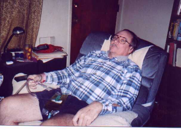 All comfey on the chair, with my bile drain bag! (26kb) |