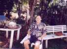 Taking some sun in the yard in the Hawaiian shirt Lorie got me. That