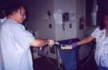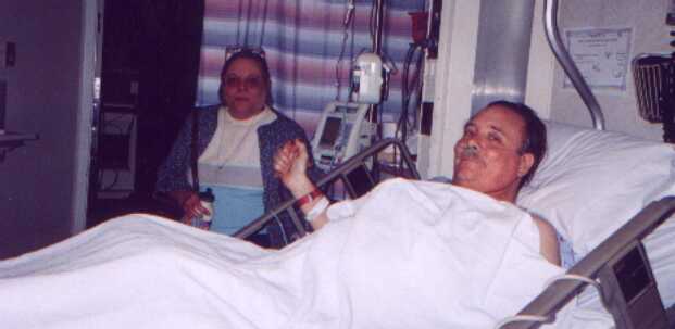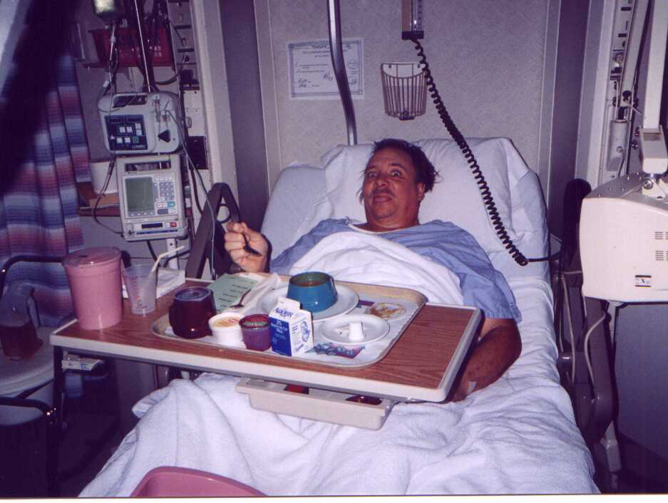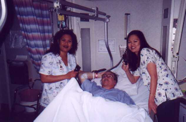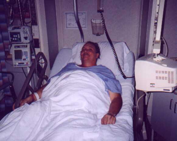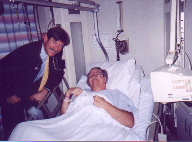 This is me and my surgeon. That's my bathroom clipped to the bed rail. (24kb) |