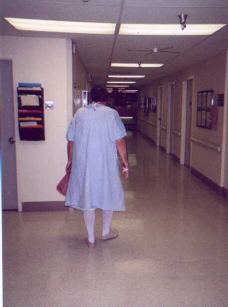 The other activity! Walking down the hall. twice a day! How about them sexy stockings? (18kb)! |