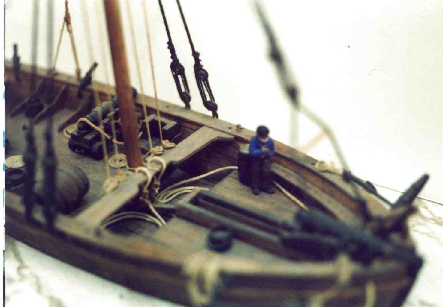 Closeup showing amidships cannon and fireplace. How cozy! Barrels and buckets were also purchased.