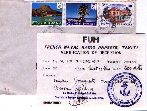 of Tahiti. Heard August, 1989. Nice stamps! |