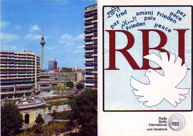 Radio Berlin International (East Germany) heard April, 1989. QSL on